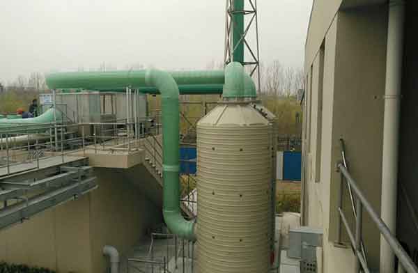 污水處理廠悉臭氣體通常濕度較大且有腐蝕性,供暖通風工程中常用的鋼板、木板在此處不再適合。實際工程中最多采用的是玻璃鋼風管,其具有強度高、抗腐蝕、耐老化密度小,制作安裝方便的特點。對于距離較短、管徑較小且室內使用的情況,也可采用塑料管。
