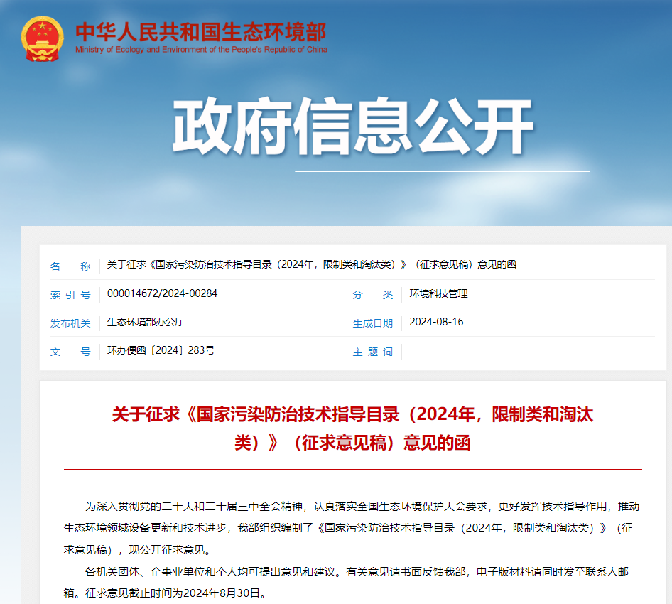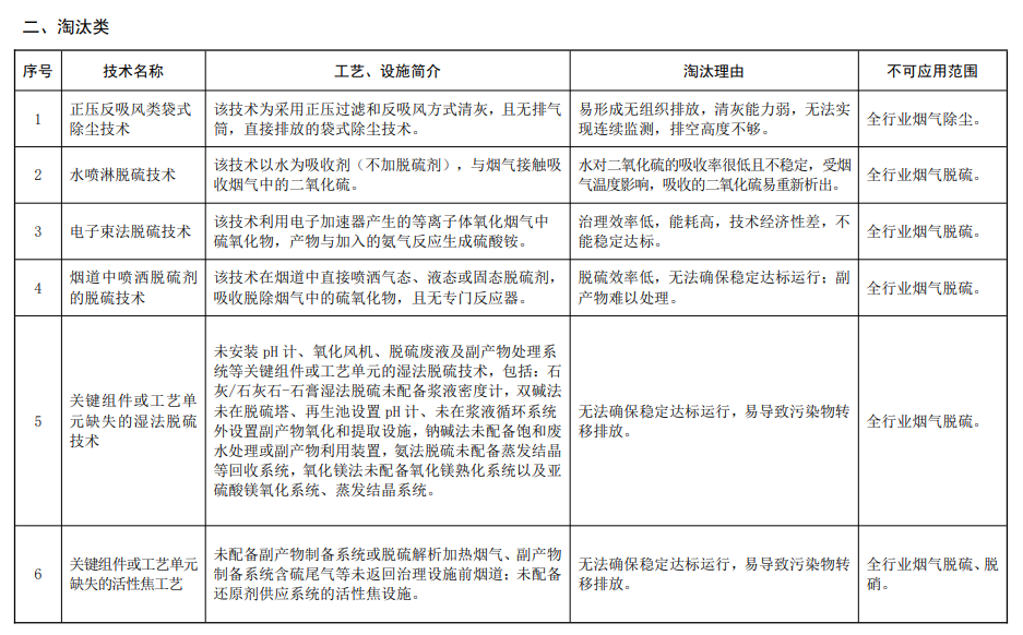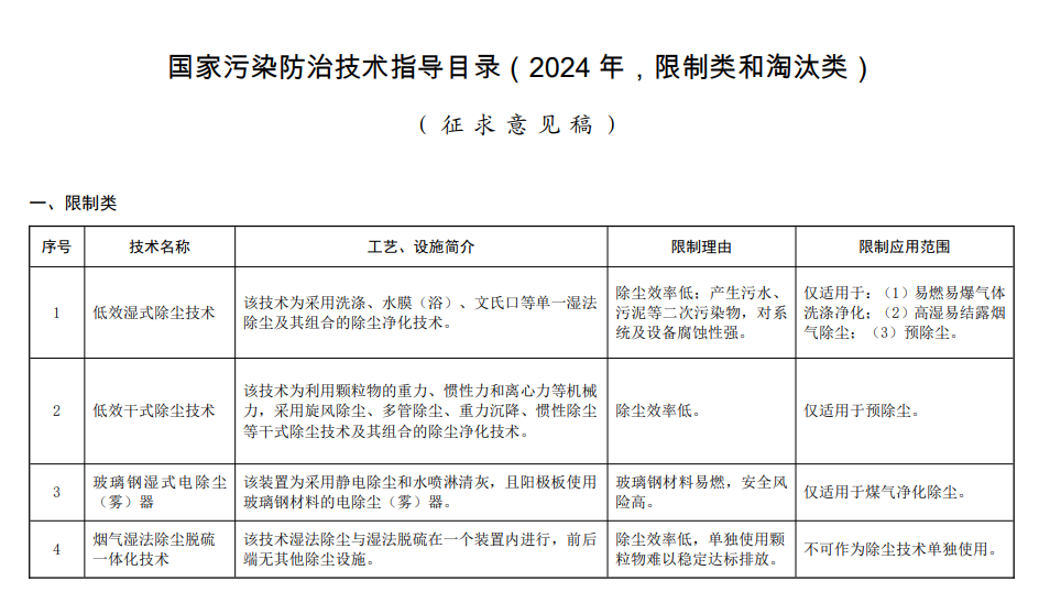 《國家污染防治技術指導目錄(2024 年,限制類和淘汰類)》(征求意見稿)共有 20 項技術,