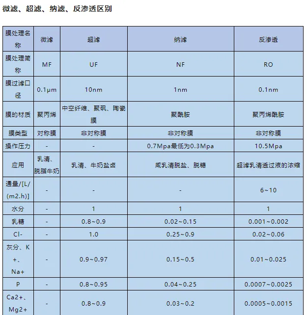 微濾、超濾、納濾、反滲透區別