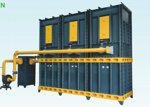 本裝置由主機、引風機及電控柜組成,凈化裝置主機由換熱器、催化燃燒裝置、電加熱元件、阻火器等組成