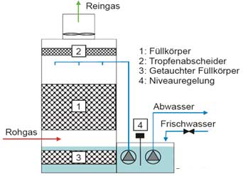 豬場用除臭設(shè)備的原理比較簡單,和工業(yè)除臭設(shè)備的填料塔(圖一)原理一樣,就是讓臭氣經(jīng)過填料,讓臭氣成份和噴淋液充分接觸,利用液相來吸收氣相,因?yàn)樨i舍臭氣中的主要成份是氨氣和粉塵,這些物質(zhì)相對都易溶于水,因而能達(dá)到除臭效果。